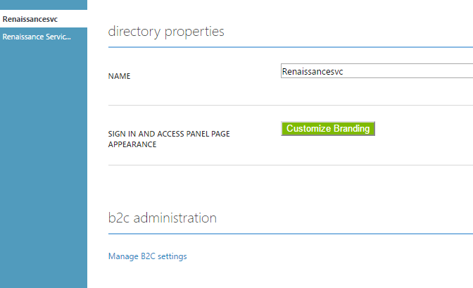 This is ‘renaissancesvcb2c.onmicrosoft.com’ your tenant ID and ‘https://www.contoso.com’URL will be required for configuring with Identity providers to sign up and sign in.