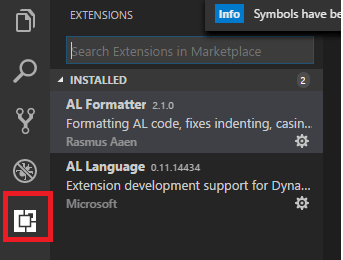 5. Click on Ctrl+Shift+P and click on download Symbols. This will download the symbols successfully. and VS Code is configured for extension in  NAV 2018 .