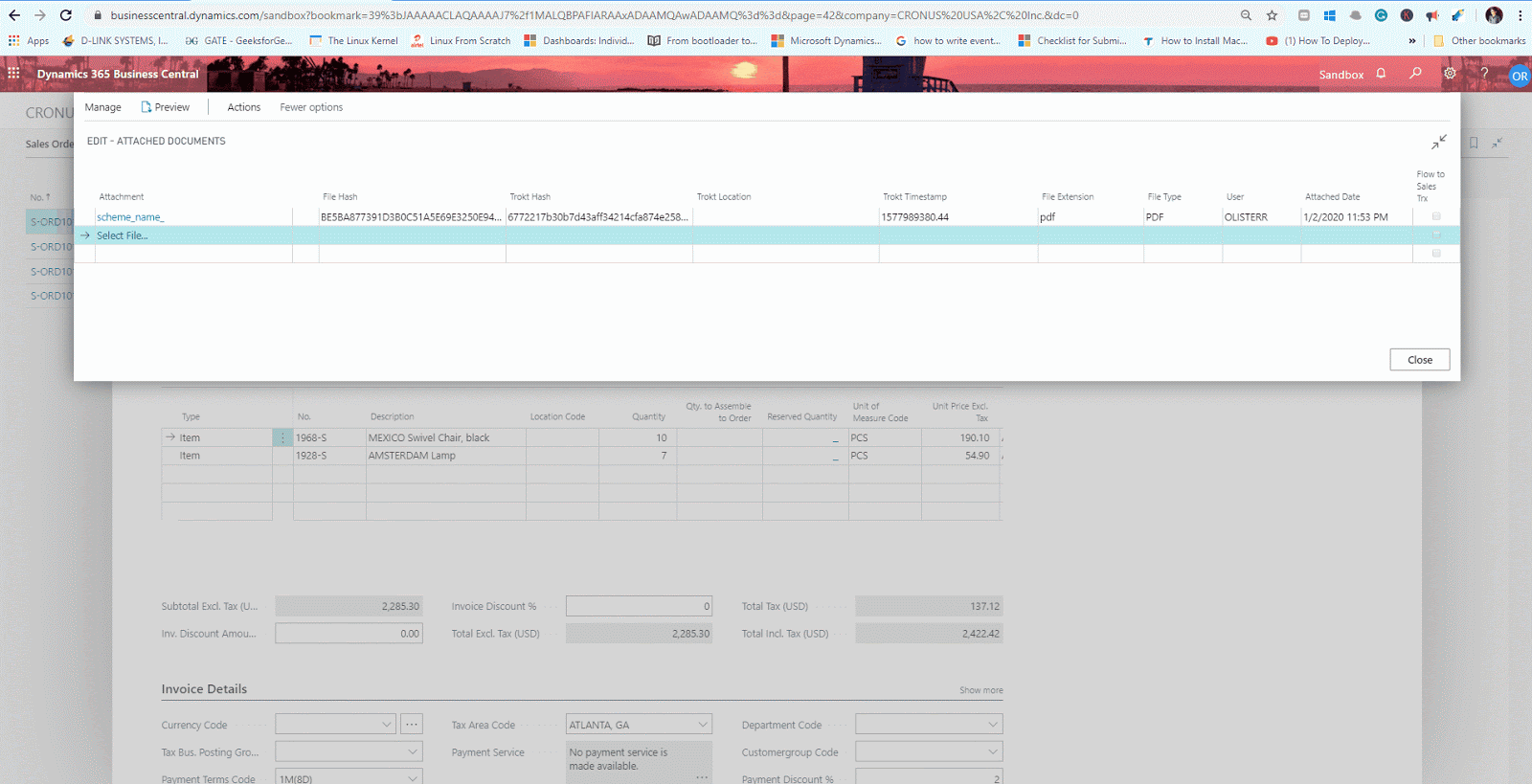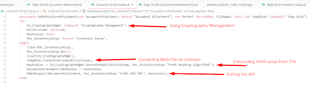 Whenever a file is Uploaded to Business Central Document Attachment Table, Business Central should auto-calculate its Hash value. The Hash Algorithm will be selected on a setup.