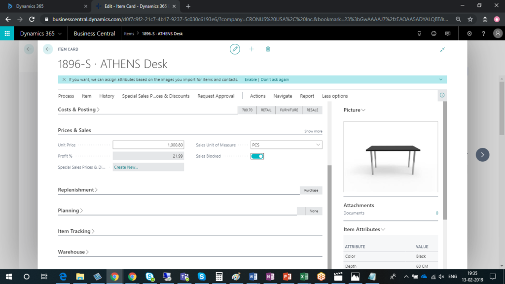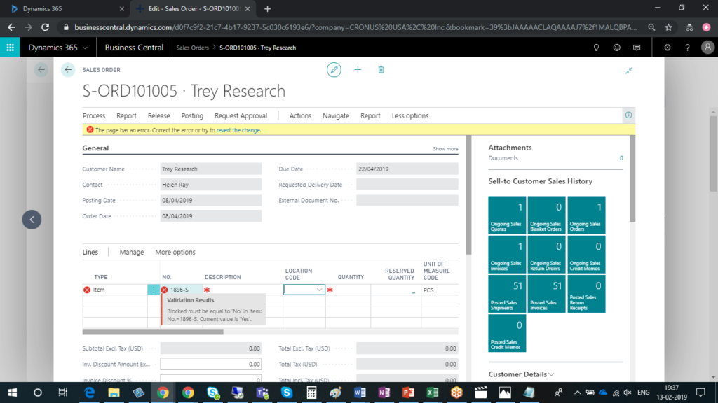 - If you try to enter the item on a sales document or journal line, you will now get an error message that the item is blocked.