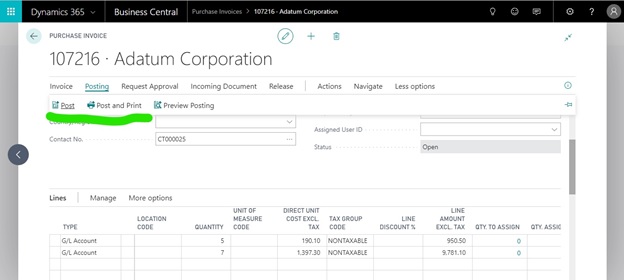 - Check for the document in the posted purchase invoice by searching for the vendor invoice number.