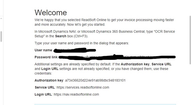 - The key is later used to send the invoices to the service provider to scan the invoice and receive it back. (without the authorization key, OCR process cannot be completed)