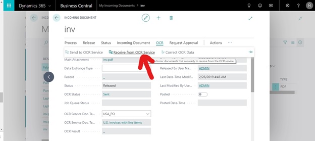- Click on receive from OCR service