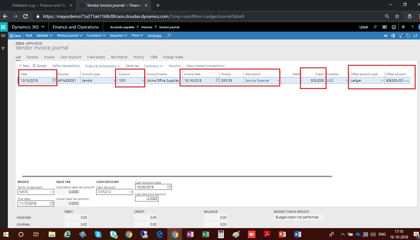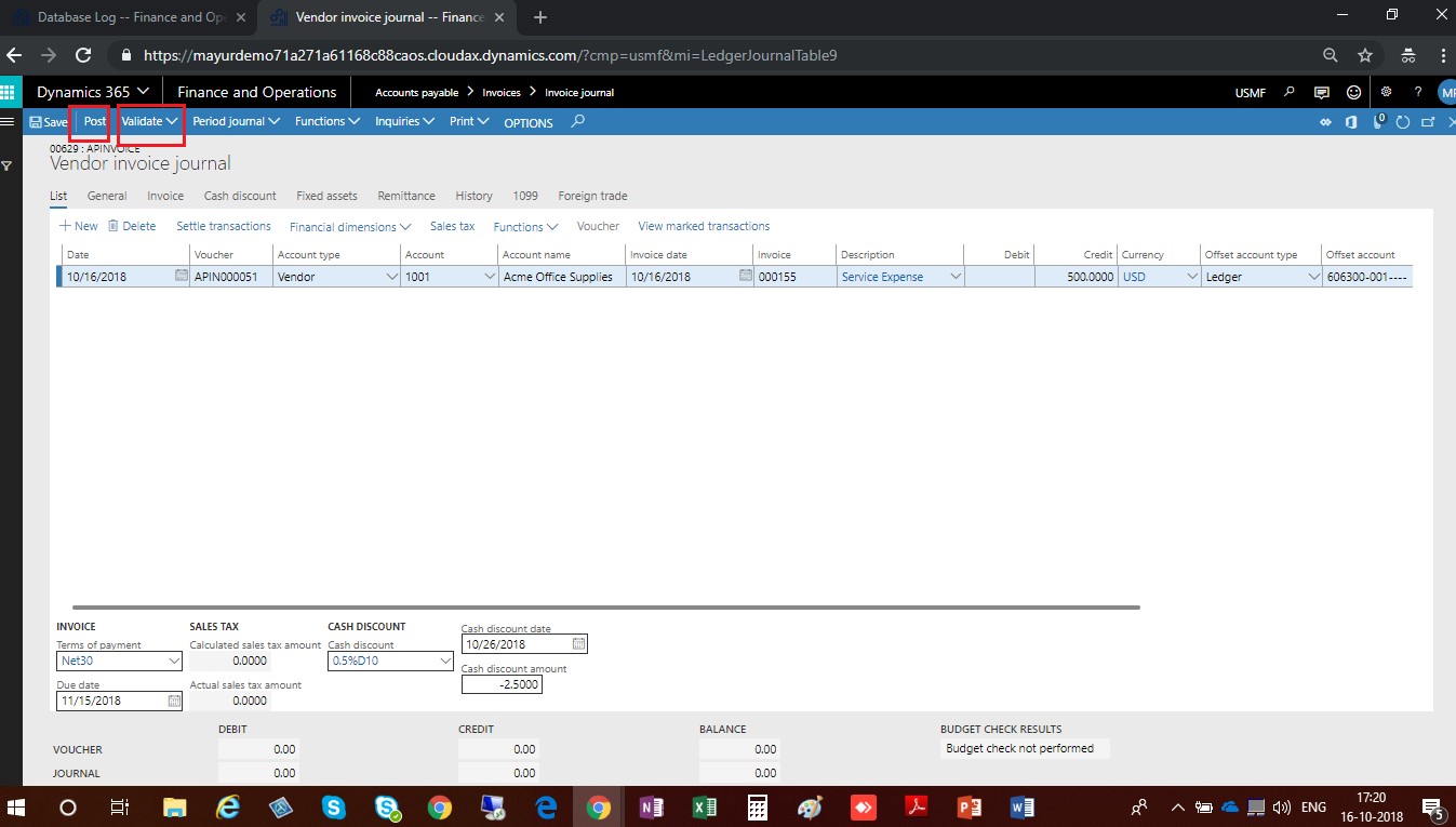 Vendor Invoice Journal-Dynamics 365 Finance and Operations