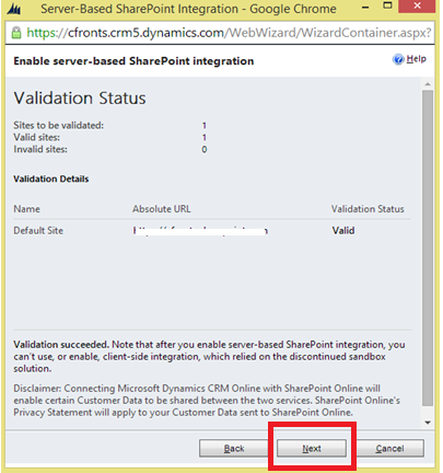 System will validate the URL provided in previous step and once the status is Valid, click Next.