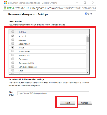 Step 4: Now Under Document Management Settings, select the list of entities for which document management should be enabled.