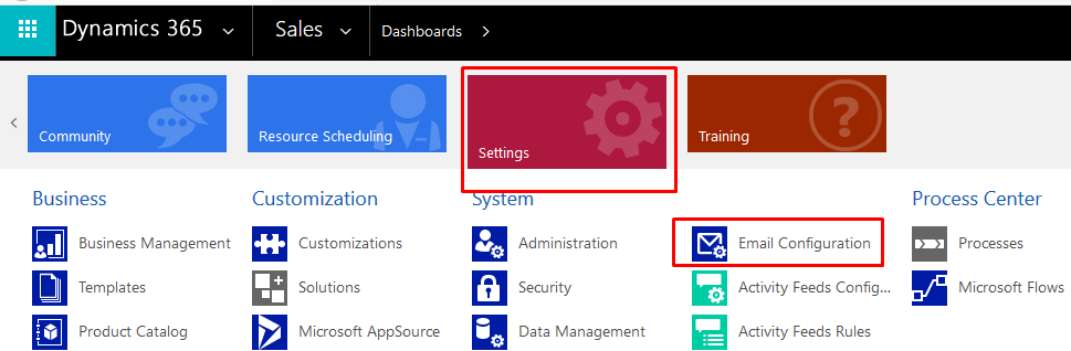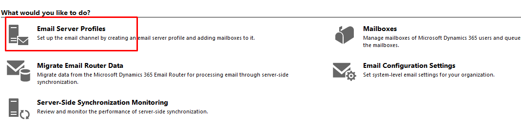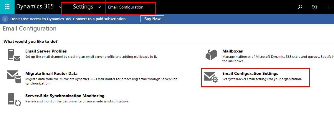 a. Go to Settings –> Email Configuration –> Email Server Profile.