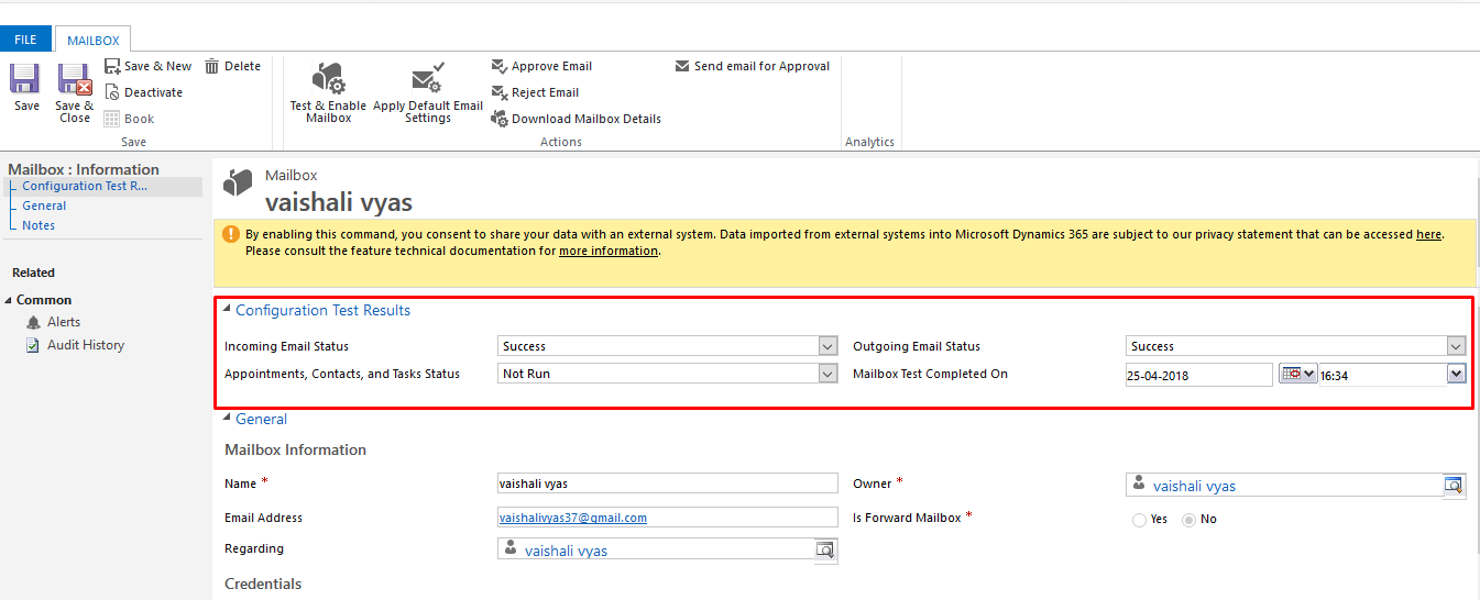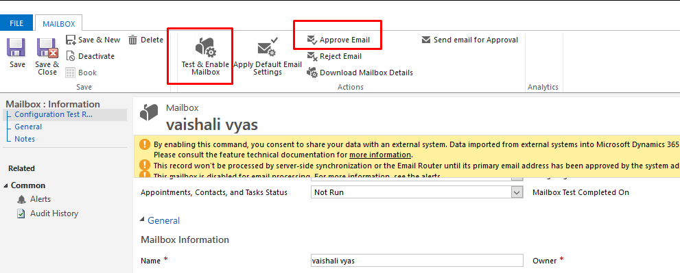 b. After enabling again go to mailbox and Click on Approve Email and Test & Enable Mailbox.
