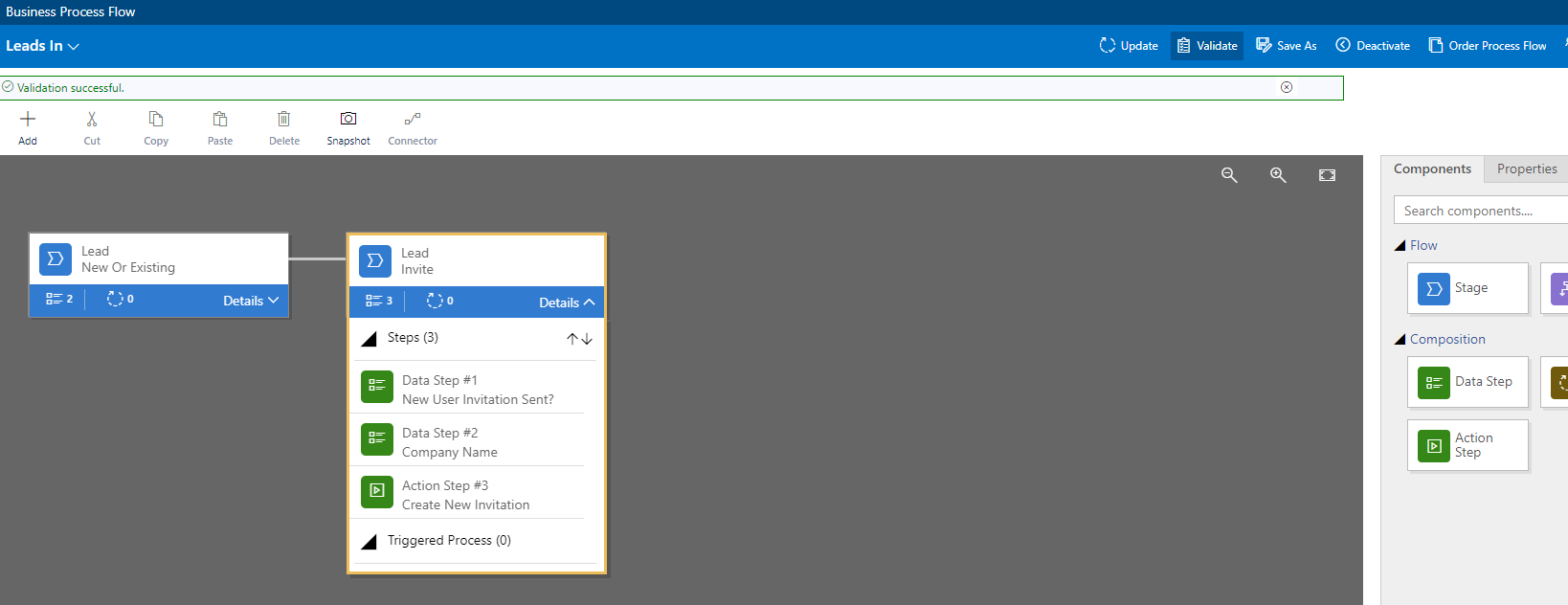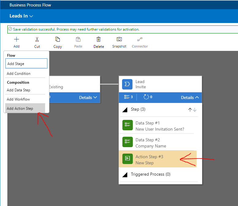 - I’ll add the already created a Workflow to the Business Process Flow in the Step Action.