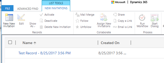 - As seen below, the record for New Invitation was created as directed in the Workflow I created.