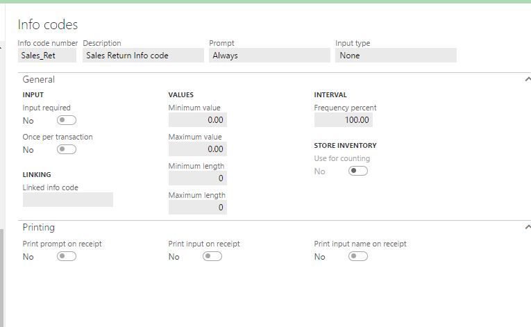 Info code is used to capture additional information and Point of Sales. It Prompt Point of sales User to enter information at time various action on Point of Sales. This various can be like, Sales transaction, Return, payment method, customer. In this blog we demonstrate info code setup on Sales return Product.