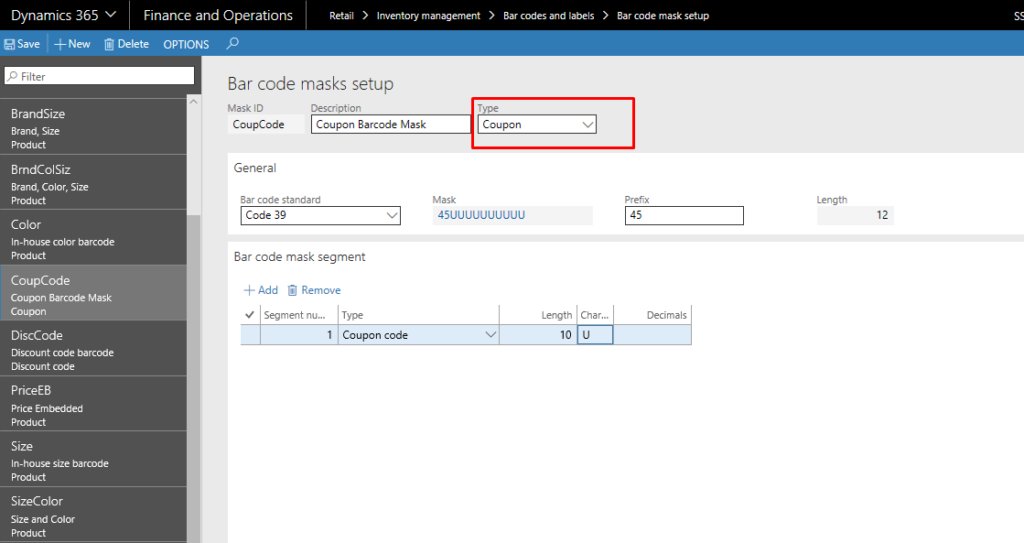 Step 5: Set the Retail Parameters for Coupon. Assign the Mask ID that was created.