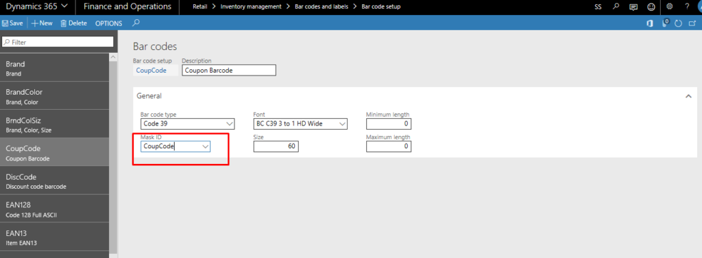 Step 3: Create Bar Code for Coupon. Assign the Mask ID which was created in step 2.