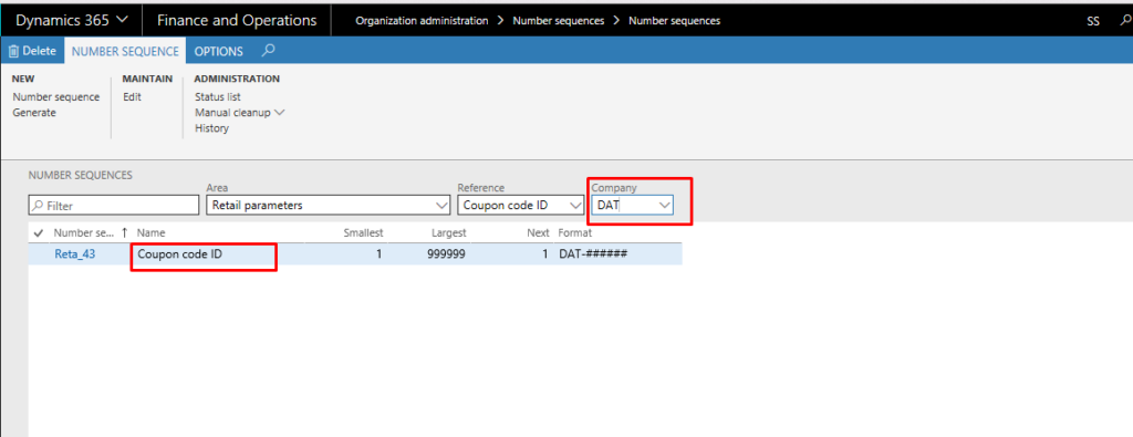 Step 4: Create Number Sequence for Coupon Code ID and Coupon Number.