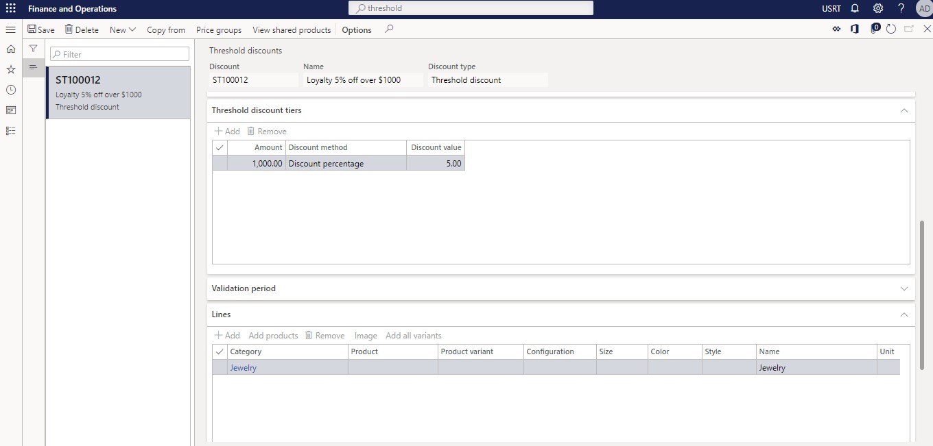 Threshold (amount-based) discount in Dynamics 365 for Retail(Commerce)