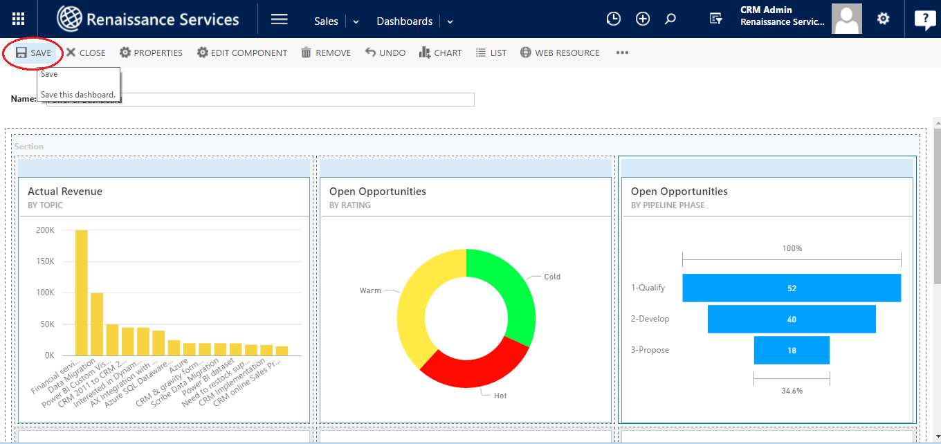 When done with designing the dashboard click on SAVE. Your Dashboard will be saved.