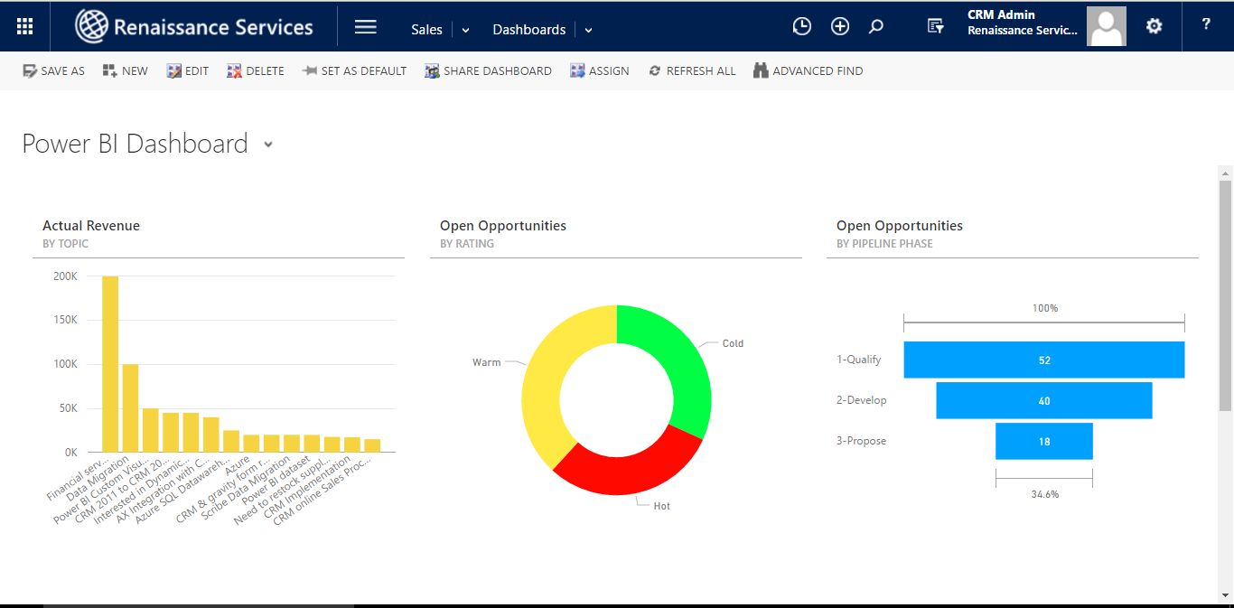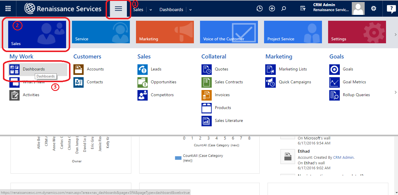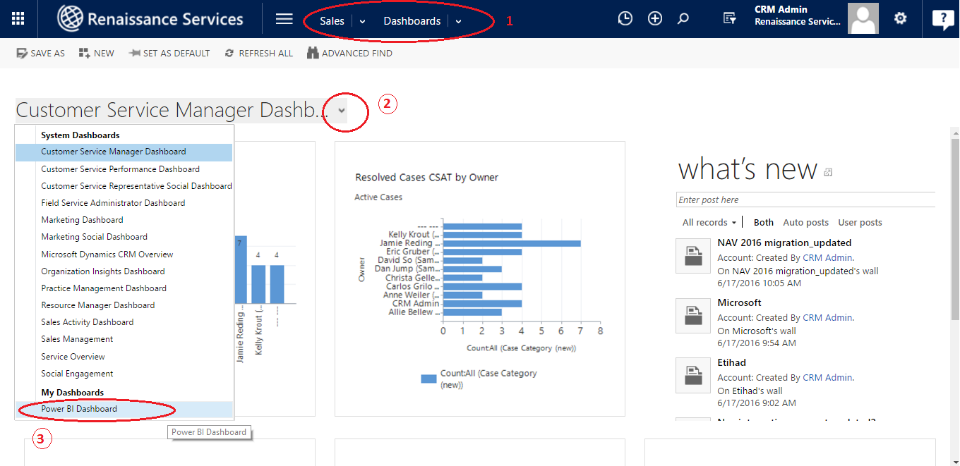 Note:  We need to have Power BI account linked with this CRM account to get the dashboard and tiles details.