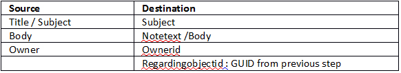 In Scribe, configure source and and select ‘annotation’ entity in the target(CRM).