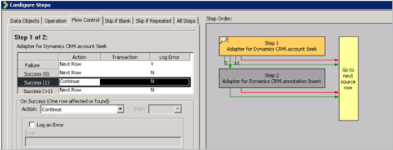 1. Seek step will lookup ‘accountid’ and if it finds one, will continue to next step else the record will be skipped