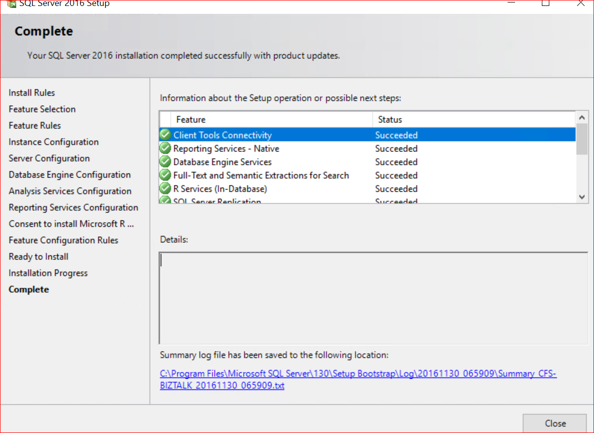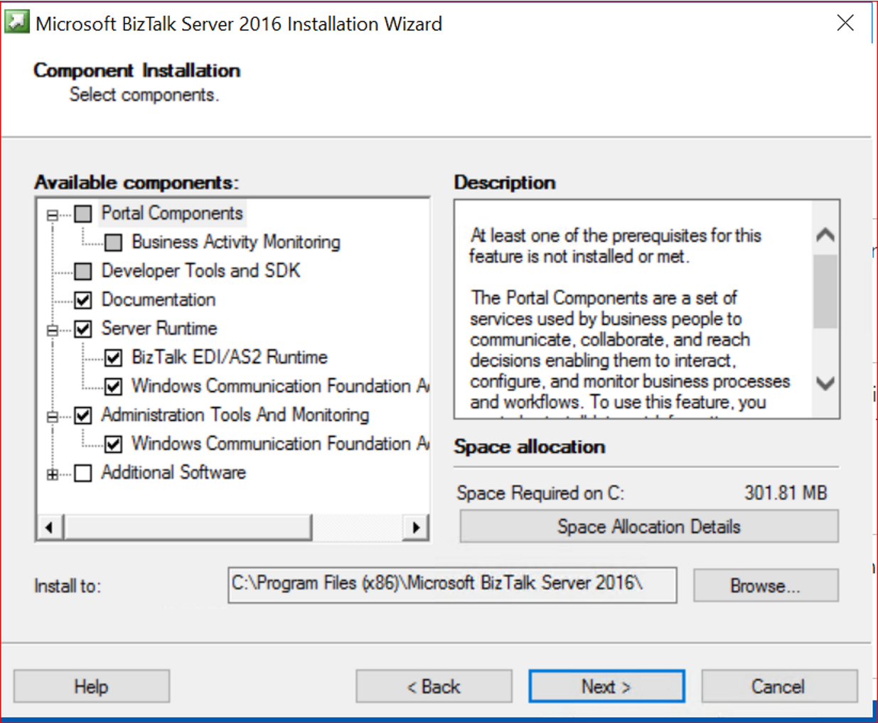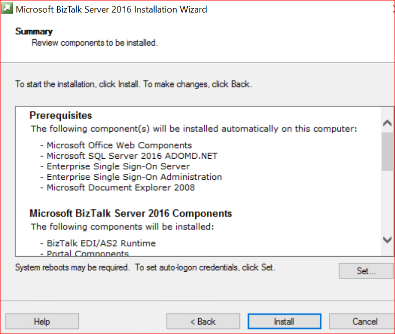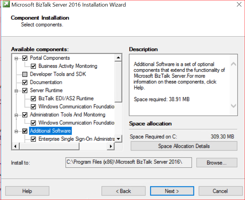 Below is the list of Microsoft BizTalk Server 2016 Components that will be installed.