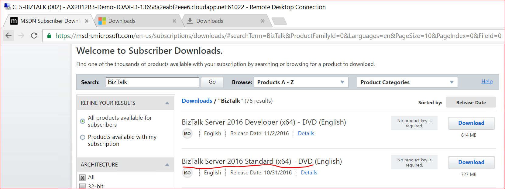 Download the BizTalk server 2016 Standard Edition from MSDN. (File Size – 727 MB)