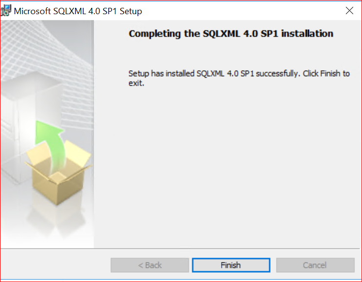 For resolution, if you download and install Microsoft SQL XML 4.0 with SP1, you will again get error as below.