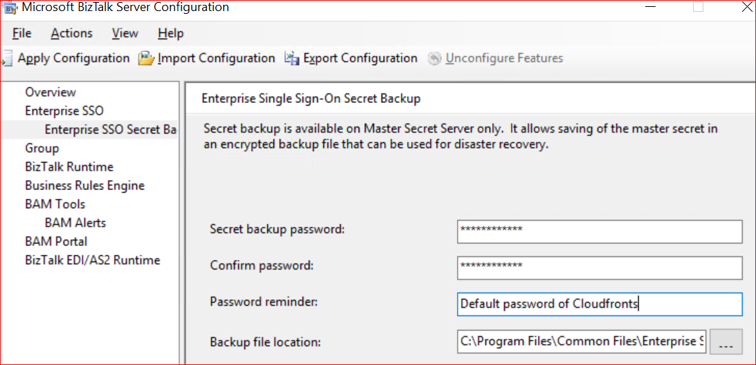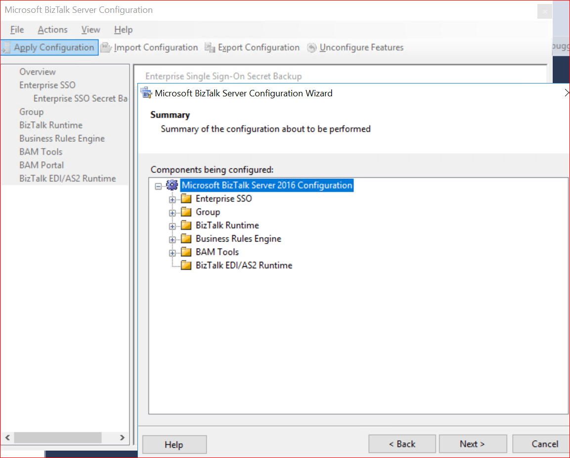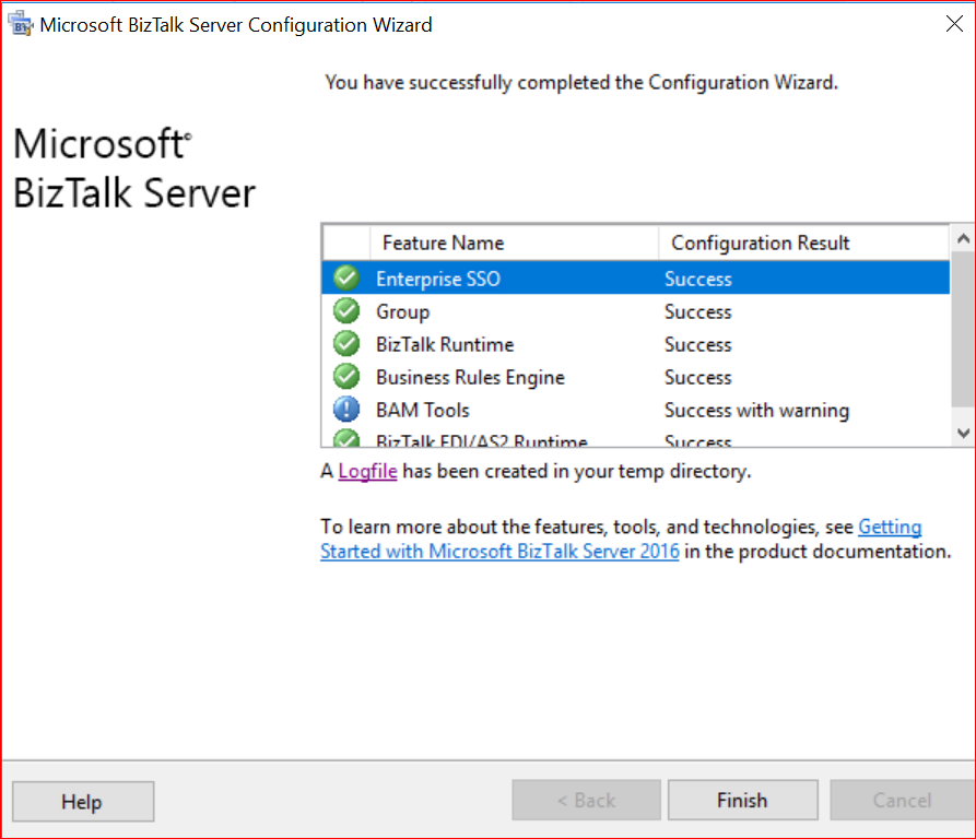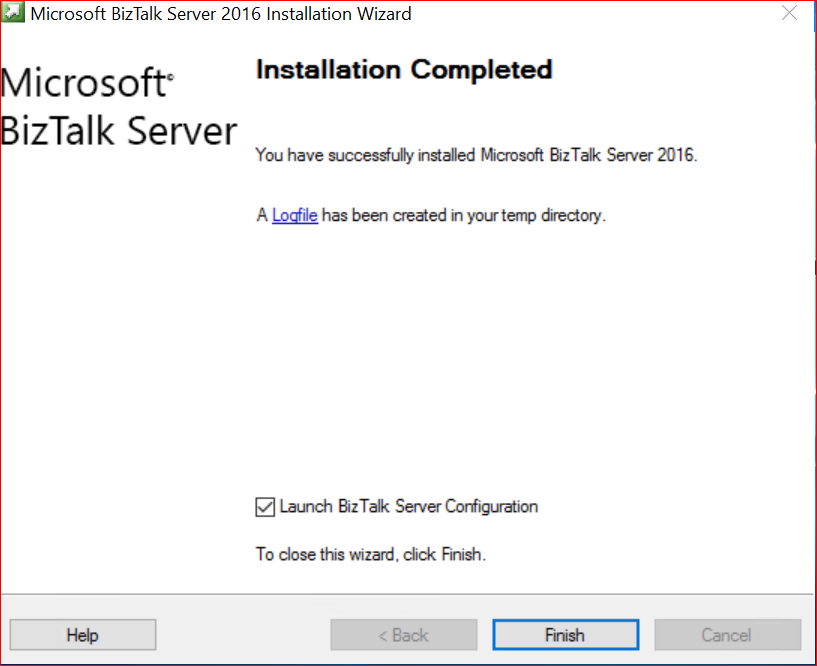 At the end of installation, you can also review the log file for detail of installation or troubleshoot any error or warning during installation process. It is advised to export and back up the configuration of BTS2016. (Default path of back up is “C:\Program Files (x86)\Microsoft BizTalk Server 2016”)