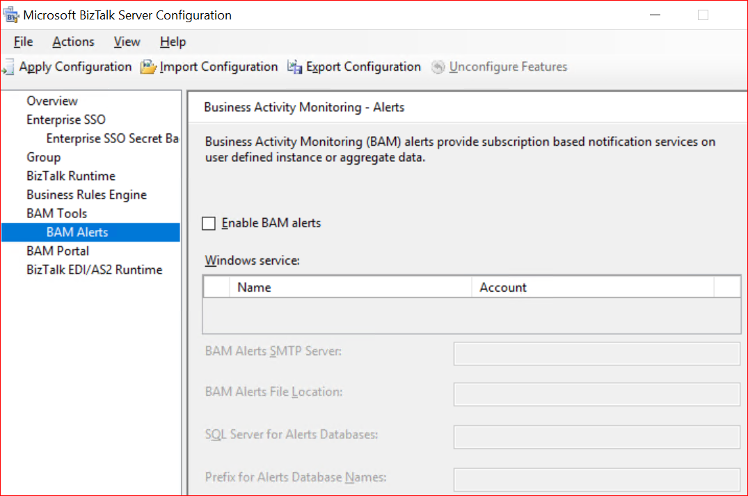4. SMTP Server (optional), EXCEL 2013 (optional), SQL Server Database Mail (optional), If you intent to use BAM Alerts (Business Activity Monitoring)