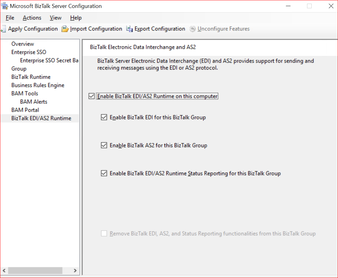 You can add or remove additional components after this installation using the “Microsoft BizTalk Server 2016” entry in the Add/Remove section of the Control Panel.