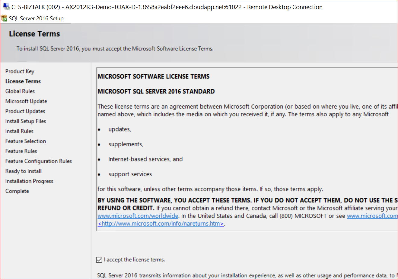 In this article, we will be going through the steps for installation of BizTalk Server 2016. Below steps are for installation of BizTalk Server (Standard Edition) 2016 with Microsoft SQL server 2016 Standard edition. The environment is Windows Server 2016 on Azure.