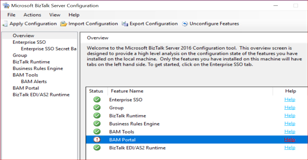 You will see configuration wizard with success message. Open the Overview tab, you will see as below indicating successful configuration. (I have not configured BAM Portal)