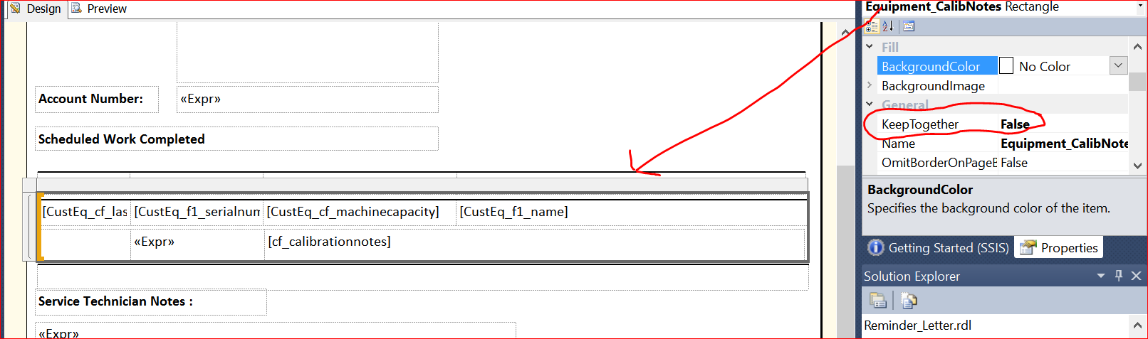 In the report designer, open the properties tab of the container that you are using in the report to display the data. Go to General section of the report and check the value for property “Keep Together”. Its value should be “False”.