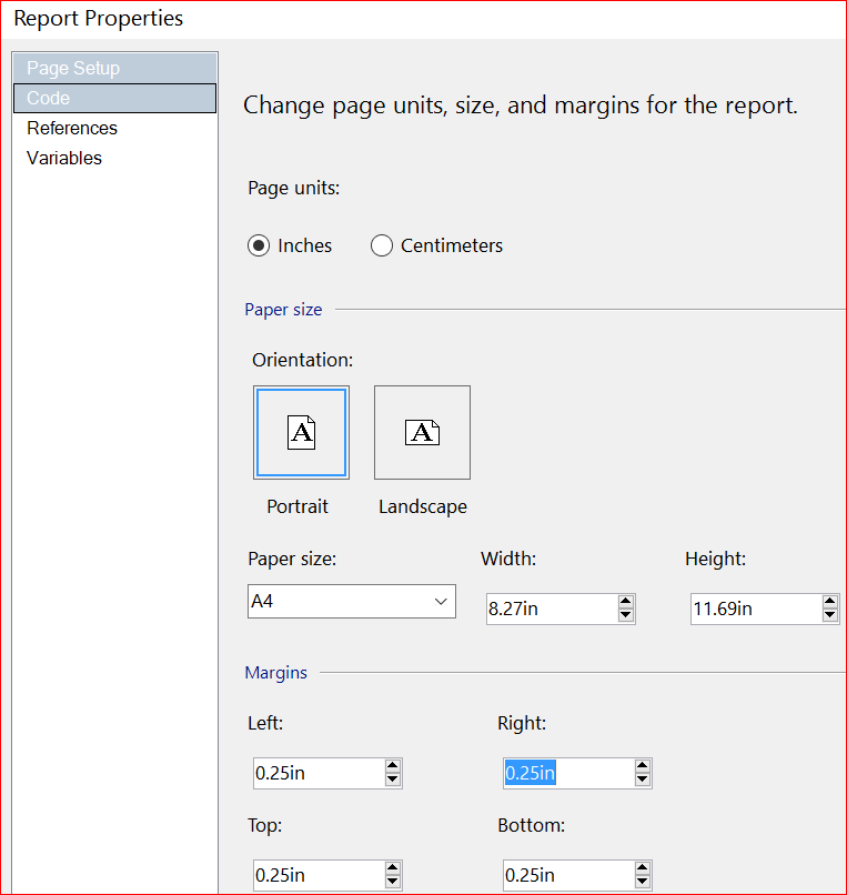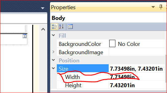 Go to Report à Report Properties à Page Setup à Note the Width and Margin Details.