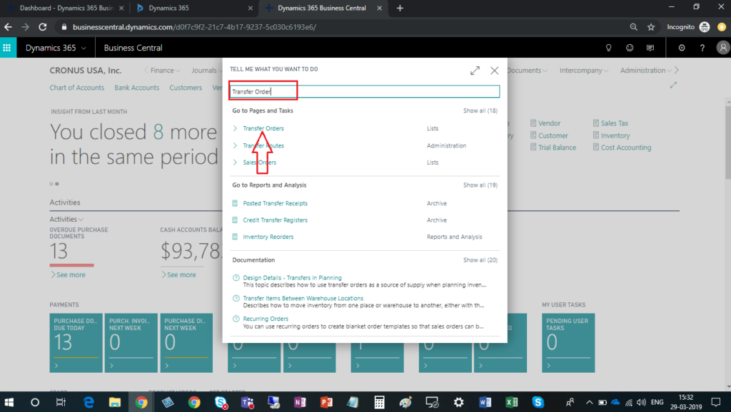 Transfer order mainly use for Transfer inventory from one location to another location.